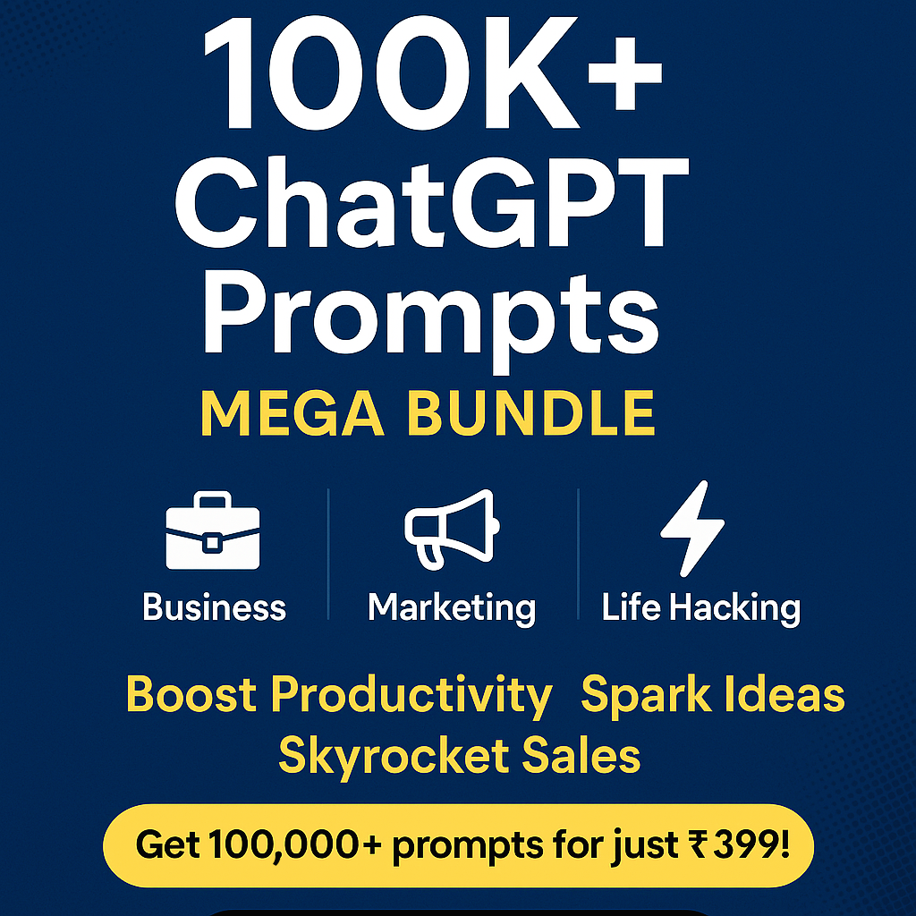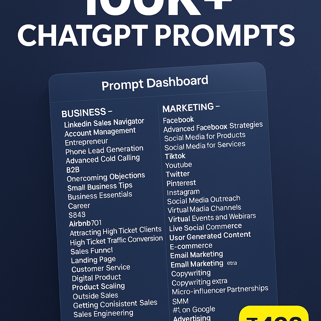 Unlock the full power of AI with our 100,000+ ChatGPT Prompt Dashboard Bundle – your ultimate toolkit for Business, Marketing, and Life Hacking.