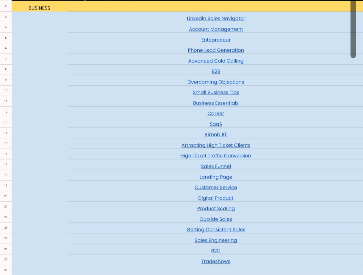 💼 Business (LinkedIn, Cold Calling, Sales Funnels, B2B, Scaling, and more)